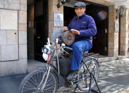 Hace unos 25 años que el nacido en Santiago de Chile subsiste gracias al oficio del afilador. En principio, porque “no tengo mucha competencia” y porque, a su vez, “ya tengo mi clientela. Justamente, me llaman de restoranes, café y alguna que otra casa de familia. Las carnicerías no, porque ellos mandan a las casas de afilaciones”.