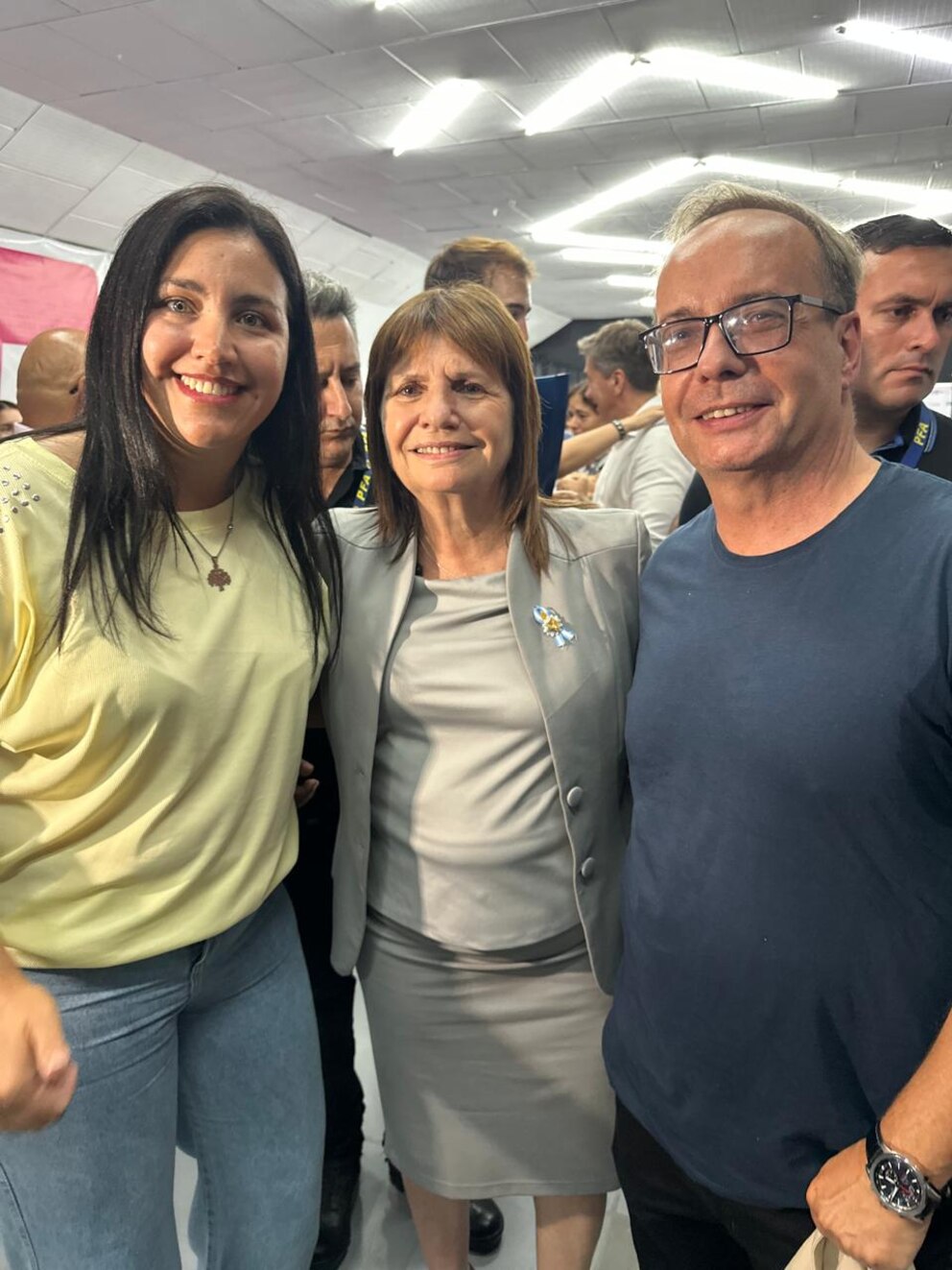 Patricia Bullrich junto a Mayra “Pili” Jarenko y Alfredo "Capi" Rodríguez, el armador libertario en Chaco