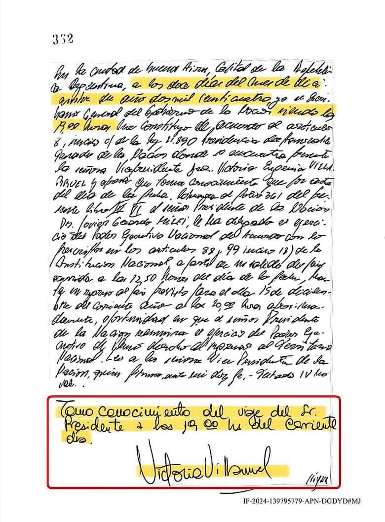 La sesión que dispuso la expulsión del exsenador Kueider es válida porque simplemente Victoria Villarruel no fue notificada, mientras presidía la reunión, de que Milei estaba en un avión con rumbo a Italia. Abundan los dimes y diretes sobre quién les dijo qué a colaboradores de la vicepresidenta o si esta escuchó los anuncios del vocero presidencial, Manuel Adorni, sobre el viaje del jefe del Estado. Villarruel no tiene la obligación de escuchar todo lo que dice Adorni, ni los chismes tienen valor cuando las instituciones están en juego. Importan los actos formales. Según copia del acta por la que Villarruel quedó notificada de que se hacía cargo del Poder Ejecutivo (copia conseguida por el diputado de la Coalición Cívica Maximiliano Ferraro, invocando la ley de acceso a la información pública), la vicepresidenta tomó nota del viaje presidencial a las 19 horas del 12 de diciembre. “Tomo conocimiento del viaje del señor presidente a las 19 horas del corriente día”, escribió Villarruel al final del acta, a pesar de que el propio documento del escribano general del Gobierno precisaba que se había redactado a las 19 horas. La sesión que expulsó a Kueider concluyó a las 16.15, casi tres horas antes de la notificación formal y oficial.