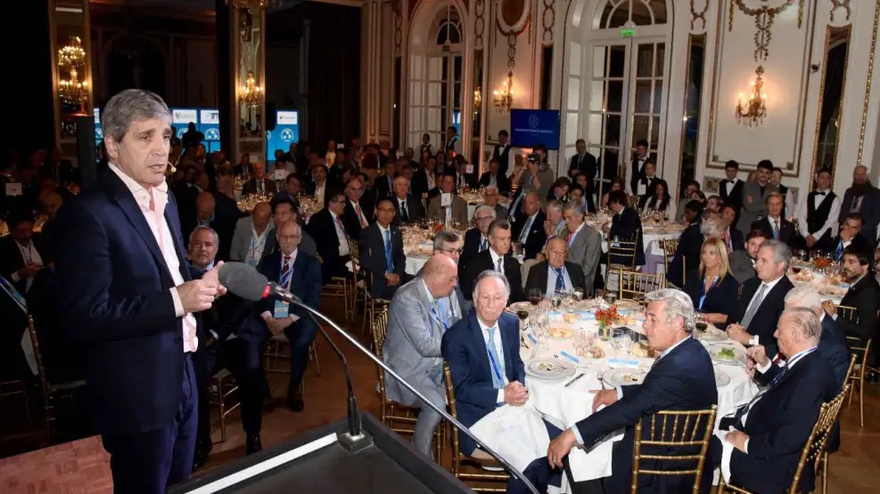 El ministro se sentó sólo unos minutos en la mesa principal al lado de Bettina Bulgheroni y del dueño de Corporación América, Eduardo Eurnekián. También estaban el titular de la Unión Industrial Argentina (UIA), Martín Rappallini; el dueño de Cabrales, Martín Cabrales; el titular de la Cámara Argentina de la Construcción (Camarco), Gustavo Weiss, el presidente de Pan American Energy (PAE), Alejandro Bulgheroni; Mario Grinman, y el ministro de Relaciones Exteriores, Pablo Quirno. El exsecretario de Finanzas se quedó un tiempo después a conversar con los hombres y mujeres de negocios, que se acercaban a él con una sola pregunta: "¿Cuándo se va a firmar el acuerdo con Estados Unidos?".