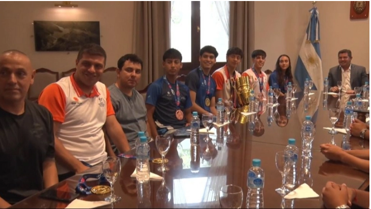 Orrego también recibió a los atletas Isabella Gómez y Valentín Ramos, quienes se destacaron en los Juegos Binacionales de Integración Andina en la Región del Maule, Chile. Gómez logró oro en 100 metros y bronce en 200 metros, con récord provincial incluido, mientras que Ramos obtuvo el tercer puesto en los 400 metros con vallas.