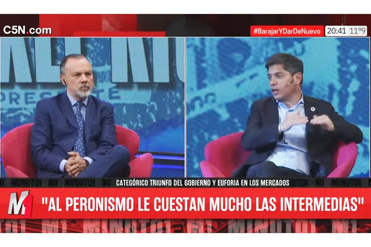 El gobernador de la provincia de Buenos Aires, en el día después de las elecciones legislativas, asistió al programa Minuto 1, conducido por Gustavo Silvestre, en C5N. “Pasaron miles de cosas pero la más relevante en estas elecciones es la intervención de Trump. Esa reciprocidad es totalmente novedosa”, aseguró. Luego, sobre la teoría del “voto miedo”, señaló: “Es la primera vez en la historia que el tesoro norteamericano intervino en la economía. Y después llegó una bravuconada de Trump que dijo ‘Si Milei no gana hundo al país…” Fue una extorsión. Una amenaza”. Y fue muy puntual al describir: “La orden de Trump ordenó a la derecha argentina: veremos qué consecuencias tiene su intervención”.