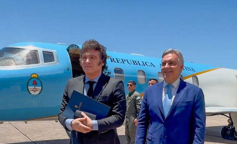 El presidente Javier Milei y el gobernador Martín Llaryora, en un viaje oficial del jefe de Estado