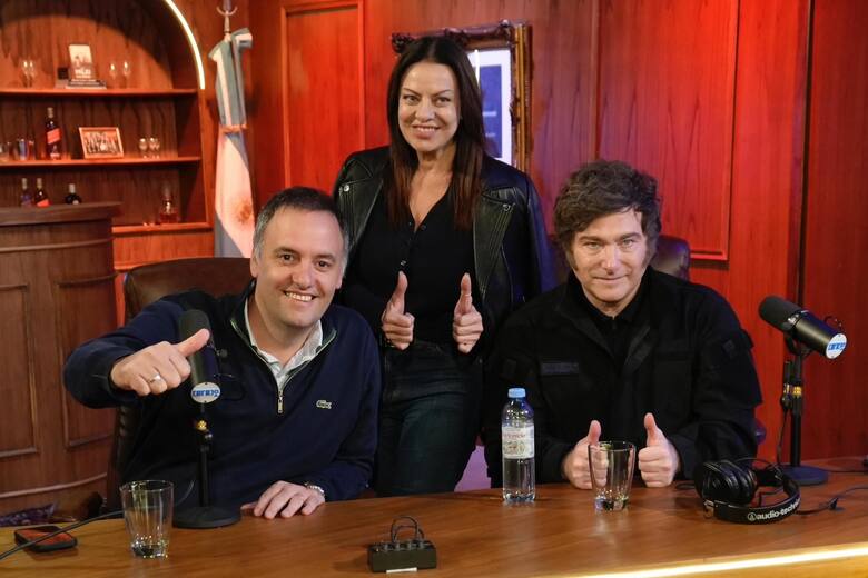 Adorni, Pettovello y Javier Milei en el set de la Misa del Gordo DanX
