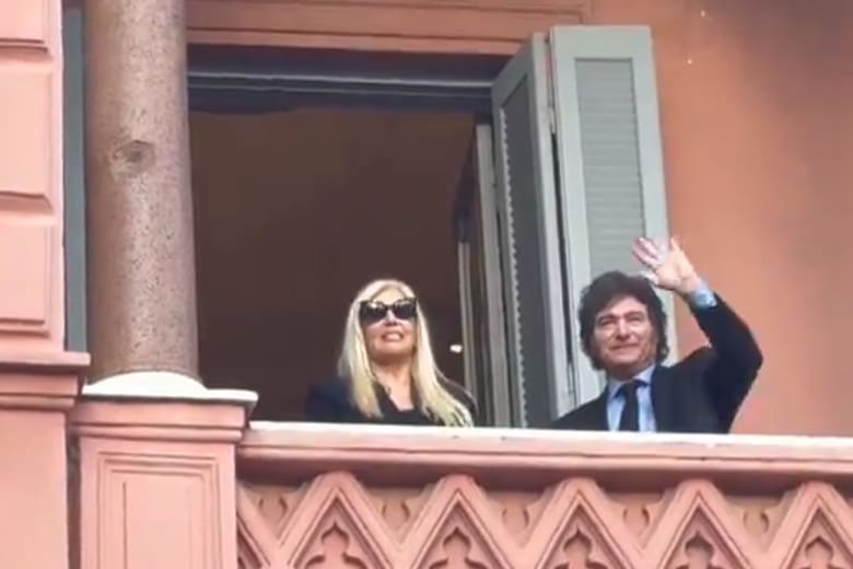 Susana Giménez y Javier Milei en el balcón de la Casa RosadaCaptura de video