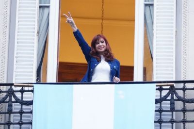 Cristina en el balcón, con la virgen de Luján