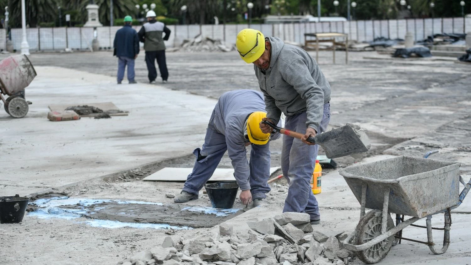 Dificultades de filtraciones retrasaron los trabajos en el sector de la Plazoleta Almirante Brown.