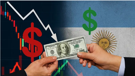 Los dólares del Tesoro de EE.UU. vienen a mantener a flote un plan económico fallido de la dupla Milei-Caputo. Imagen: IA Copilot.